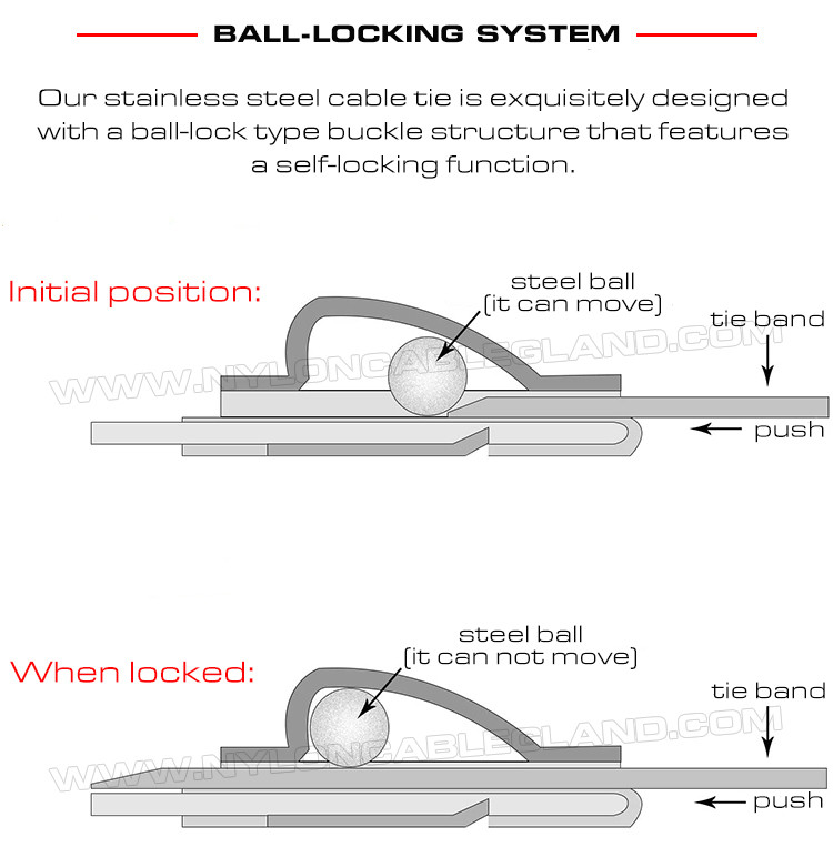 (1) उच्च गुणवत्ता वाली सामग्री - यह 304, 316 या 316 एल स्टेनलेस स्टील से बना है, धातु बेल्ट की सतह एपॉक्सी, पॉलिएस्टर या प्लास्टिक द्वारा लेपित है और अधिकतम 490 पाउंड तन्य शक्ति तक सहन कर सकती है।