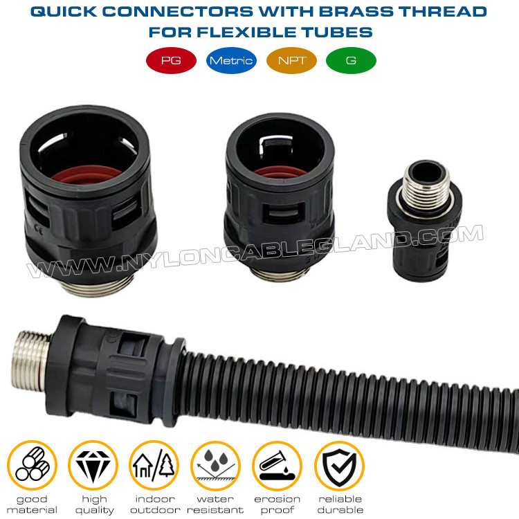 | उत्पाद का नामः | नायलॉन 6 त्वरित कनेक्टर (जोड़, फिटिंग) काला RAL9005 धातु धागा PG7~PG48 के साथ नालीदार ट्यूब AD7~AD108 के लिए |