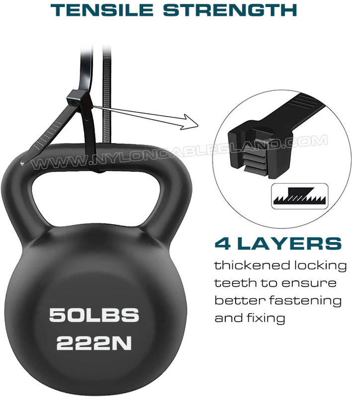 (3) मजबूत भार क्षमताः औद्योगिक-शक्ति पॉलीयामाइड 6.6 अग्निरोधक सामग्री का उपयोग किया जाता है, यह 50 पाउंड तक की तन्य शक्ति का सामना कर सकता है, इसमें मजबूत भार क्षमता, एंटी-एजिंग, एंटी-एसिड,क्षरण विरोधी और स्थायित्व.