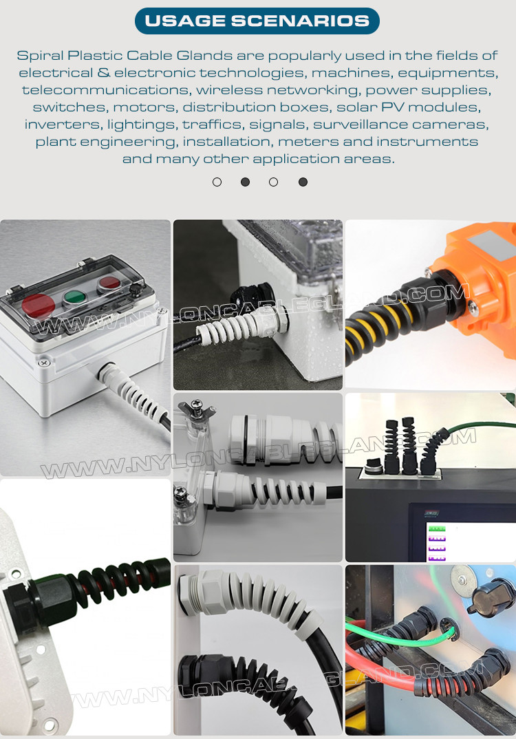 【व्यापक रूप से अनुप्रयोग】सर्पिल तनाव राहत केबल ग्रंथियों का व्यापक रूप से केबल फिक्सिंग, जंक्शन बॉक्स कनेक्शन, वितरण पैनल, विद्युत अलमारियाँ और अन्य विद्युत उपकरणों में उपयोग किया जाता है। केबल ग्रंथि को बिना अलग किए स्थापित करना आसान है।