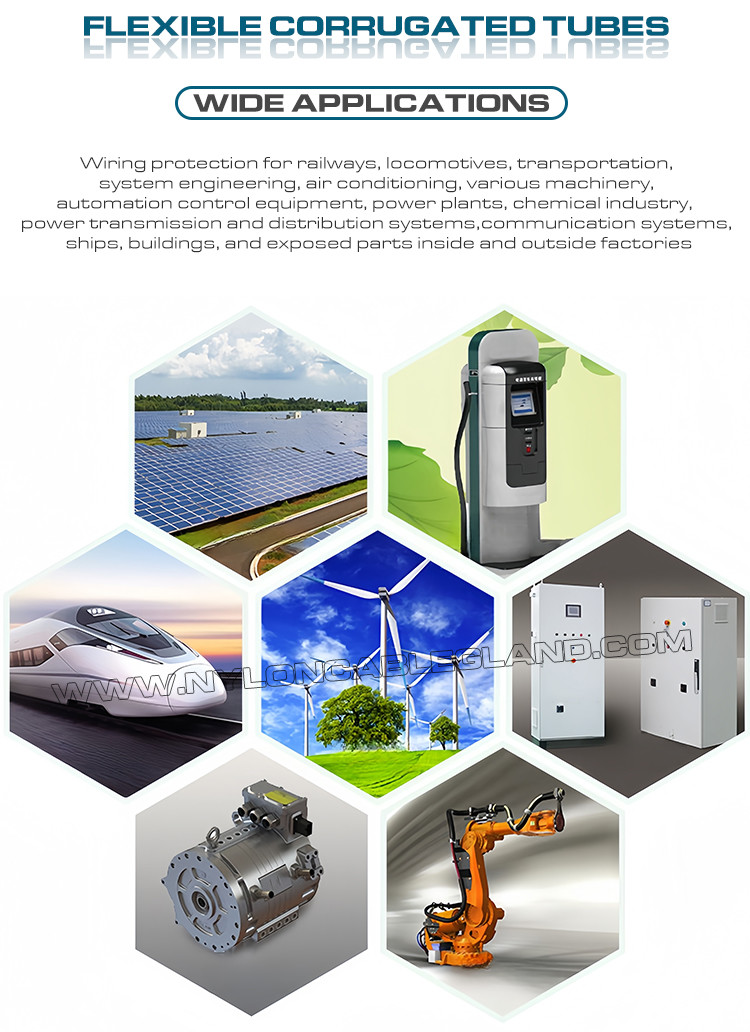 [अद्वितीय डिजाइन]- ट्यूब एक तरंगदार ट्यूब है जिसका उपयोग तार के हार्नेस या किसी अन्य उत्पाद को सुरक्षा प्रदान करने के लिए किया जाता है जो असामान्य परिस्थितियों के अधीन हो सकता है,जैसे निरंतर घर्षण और कंपन पहनना, छिद्रण, पानी, बर्फ, बर्फ, नमक और यूवी किरणें।