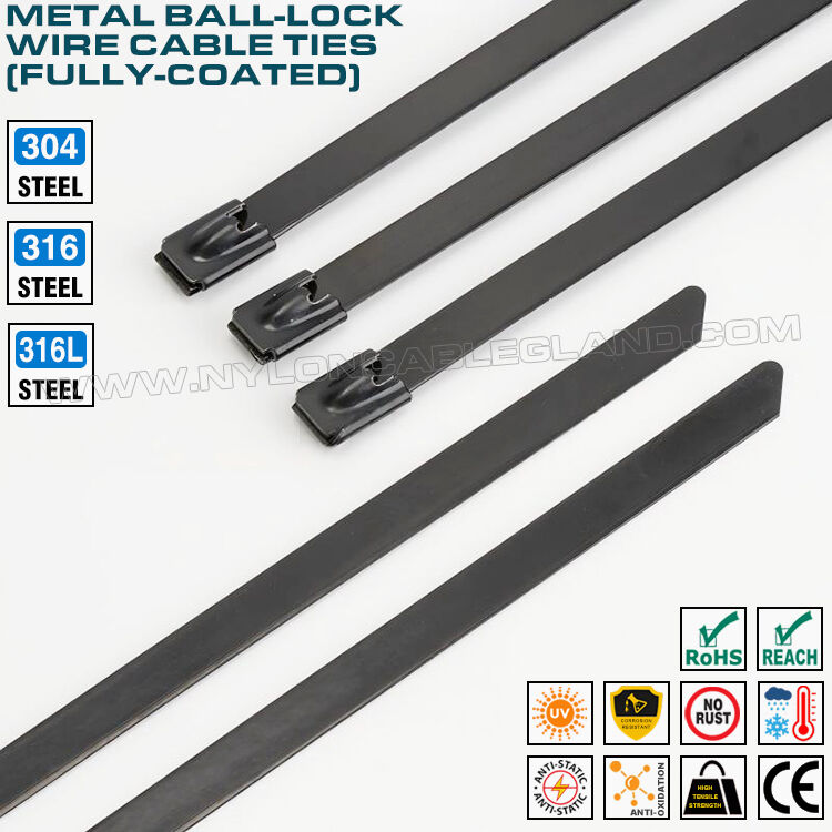 पूरी तरह से लेपित स्टेनलेस स्टील केबल टाई धातु ज़िप टाई एक प्रकार का फास्टनर है जिसमें बॉल-लॉकिंग और पूर्ण एपॉक्सी (पॉलिएस्टर या नायलॉन 11) कोटिंग होती है। धातु की बकल और बेल्ट स्टेनलेस स्टील 304, 316 या 316L में बने होते हैं और पूरी सतह पूरी तरह से एपॉक्सी सामग्री (पॉलिएस्टर या नायलॉन 11) की एक परत से ढकी होती है। कोटिंग केबल टाई को अतिरिक्त सुरक्षा प्रदान कर सकती है और इसे अधिक संक्षारण-प्रतिरोधी, अधिक पहनने-प्रतिरोधी और अधिक सुंदर बना सकती है। इनका व्यापक रूप से बिजली प्रणालियों, रासायनिक उद्योग, समुद्री, पेट्रोलियम, मशीनों, पाइपों, आचरणों, उद्यानों, खेतों आदि के क्षेत्रों में फिक्सिंग और बंधन के लिए उपयोग किया जाता है।